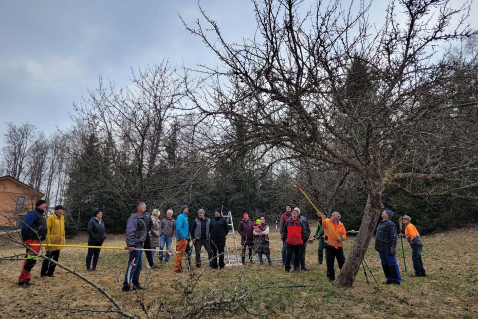 Der Gartenbauverein Breitenberg hat wieder zu einem  praktischen Baumschneidekurs für alle interessierten Gartenfreunde eingeladen. Trotz des kühlen Wetters sind 23 Interessierte zur Streuobstwiese in Jägerbild gekommen. Die Baumwarte Alois, Gerhard und unser neuer Baumwart Adam legten fachmännisch Hand an die Obstgehölze an. Für einen guten Ertrag ist die richtige Pflege wichtig, weshalb bei den älteren Obstgehölzen ein Verjüngungs- oder Erhaltungsschnitt vorgenommen wurde. Die Vereins-vorsitzende Scheibenzuber dankte den Baumwarten für die guten Tipps, die die Besucher für die Arbeit im eigenen Garten mit nach Hause nehmen konnten.